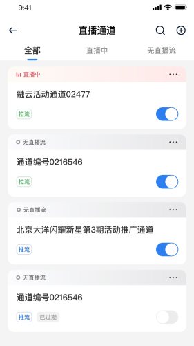 与大洋融云大观直播平台深度整合,可在工具中直接查看您的直播通道信息,使用手机进行推流,灵活方便,免去输入或复制推流地址等繁琐操作。