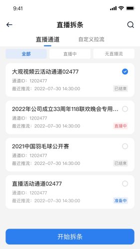 大观视频云app,功能齐全的直播管理平台,具备素材上传、一键直播、连线采访、语音通话等功能,为用户带来更便捷的直播管理服务,轻松推广,使用更轻松。