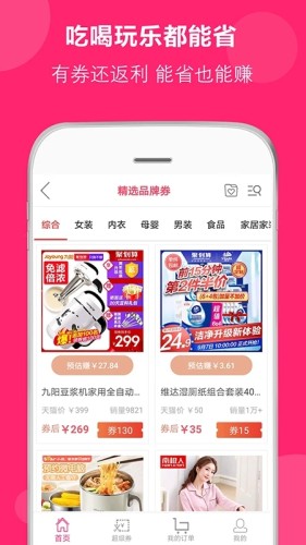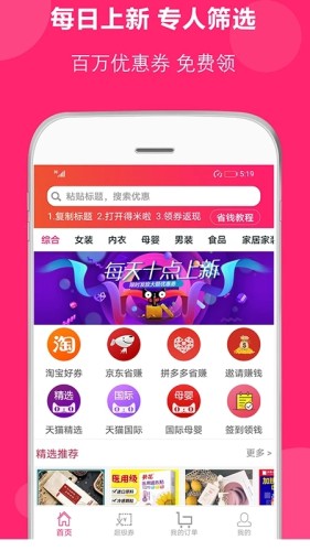 一款超省钱的购物软件,百万优惠券等你来领取,吃喝玩乐样样都能省。还有返利活动,整体的操作流程非常的简单,只要先领券下单,就有返利奖励哦。