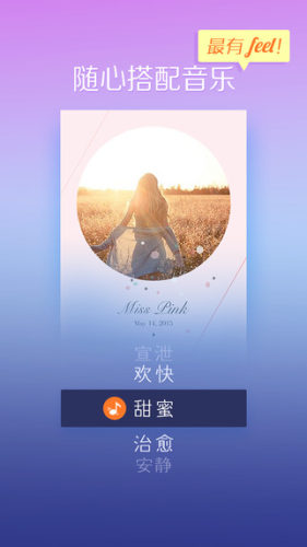 给你的照片,配上优雅、有情绪、充满故事性的背景音乐。在音乐、动画的衬托下,照片不再只是精致的图片,而是富有生命力的一段段动人的故事……