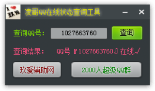 凌哥QQ在线状态查询工具可以帮助你查询你的QQ好友是否在线,它专为QQ用户打造,需要的童鞋来试试把,不过现在很多人习惯性隐身,抓隐身没有什么意义,意义在于你想找人说什么事的时候,可以确认他QQ是开着的。