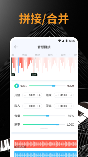 4.拼接合并:提供有音频拼接工具可以帮助用户将多个音频文件拼接合并成一个音频文件