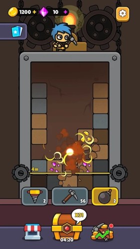在挖掘过程中发现宝箱,获取更多的财富和奖励,不断升级自己的装备和能力。