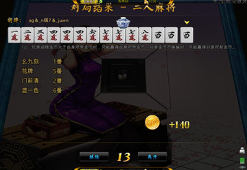 根据只有一色序牌和字牌的特点,从国标麻将规则挑出了合适的番数算法,提高竞技性和娱乐刺激性,有更多的机会胡出高番的牌。