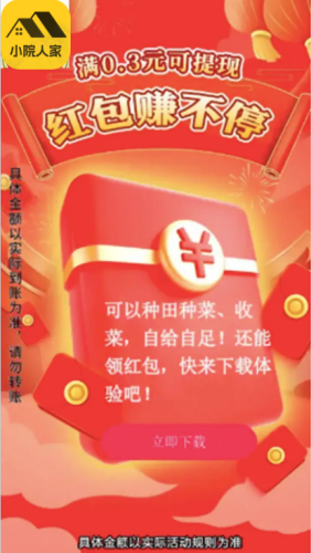 小院人家是款好玩的休闲益智手游,在不同的关卡中来完成挑战吧,玩家需要点击屏幕来进行消除,达到不同的分数来解锁更多红包奖励,累计即可无门槛提现,感兴趣的小伙伴快来加入我们吧!