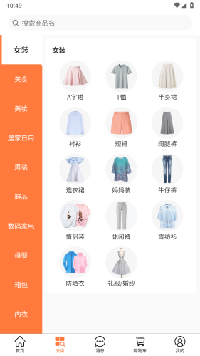 2、不同的种类的商品划分的非常的清楚,让大家快速的找到