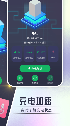 一款支持快捷充电的强大手机助手。采用卡通可爱的喵咪形象,界面简洁易懂,操作流畅。支持所有的安卓手机类型,提供智能化的快充服务,让您的手机在最短时间内达到最佳充电效果。