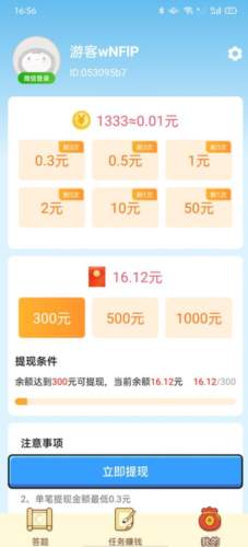 登录送5元,可直接秒提0.3,后续两天应该还能再提两次0.3的。