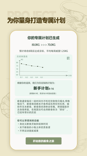 1、提供了数据统计功能,帮助用户实时查看自己的减肥进度并做出相应的调整和改进;