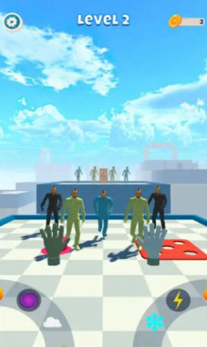 2、用你的压碎手指和魔法朋友彩虹手消灭你的敌人!通过奔跑手指击败敌人。