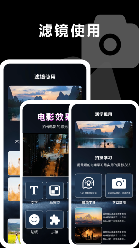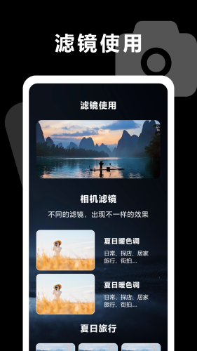 - 50+的实时滤镜,可拍照前预览滤镜效果