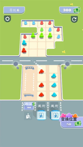4、随着游戏的进行,您将需要同时管理多个厕所,确保每个人都能按照颜色分类使用厕所。