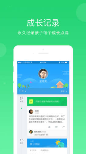 3.【成长记录】家长可以记录孩子成长中的点点滴滴,每一个特别的瞬间都将被永久保存。