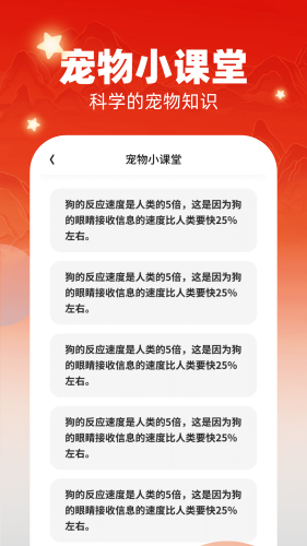 可以随时在线查询各类相关的知识点内容,主要针对养宠的用户,让你轻松在线了解各类知识点,满足不同用户的阅读需求。