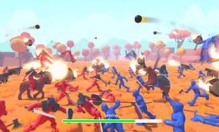 全面融合战争模拟,一款经典的红蓝战争模拟游戏,玩家加入你的阵营化身指挥官,召集野蛮人,维京人,小兵等多个兵种组建军团,排兵布阵征服战场,获得战争胜利。