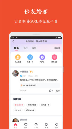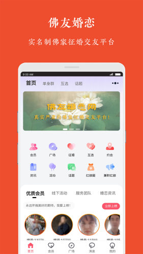 佛友婚恋是一款深受新手用户喜爱的在线相亲交友应用,所有的交友功能均可在用户操作时免费使用。每个加入 APP的成员,都要用自己的真实数据来注册,必须要将自己的身份证信息进行验证,这样才能保证在使用这个软件的过程中,不会有任何的欺骗行为,结交到更多有共同爱好的朋友。