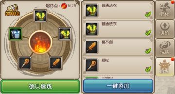 装备熔炼:英雄的装备总会更新换代,淘汰下来的装备就成了食之无味的“鸡肋”,通过装备熔炼可解决这一烦恼,熔炼装备会返还在强化过程中消耗的部分金钱及装备同时获得熔炼点,熔炼点更可以用来制造强力装备!