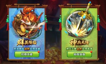 而在群英降临中,有着各种英雄等待招募,只要花点小钱就能将其收入麾下,英雄们资质各不相同,最多拥有3星的资质。和神兵降临同样,每隔一段时间都会有一位英雄愿意免费加入您的麾下。