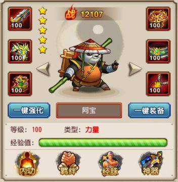 在《功夫传奇》中,一位英雄共可佩带武器、副手、甲胄、腰带、靴子、佩饰共计六件装备,每件装备又可根据品质(白、绿、蓝、紫、橙、红)和属性偏重(力、敏、智)划分,为每位英雄量身定制最合适的装备才是明智之举。