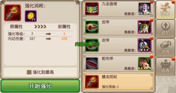 装备强化:在旅途中寻访能工巧匠强化装备是最直接的强化方式,强化之后会按固定值增加装备的属性,随时保证主力队员的装备满强化等级是非常重要的。