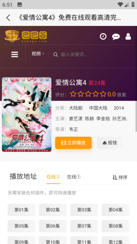 7、资源丰富:巴巴谷影视拥有大量的影视剧资源,包括国内外热门电影、电视剧、网络电影等,为用户提供了丰富的观影选择。