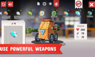 选择船体后,在上面装上轮子,其中一些轮子会更好地操纵,而另一些轮子会提供更快的速度。不要忘记选择自己喜欢的武器。您的选择在这里不受限制,这完全取决于您的游戏风格。你可以组装一个快速的小机器人,在近战中像闪电一样摧毁敌人,或者聚集一个强大的巨型坦克摧毁其路径上的一切,选择权在你手中!