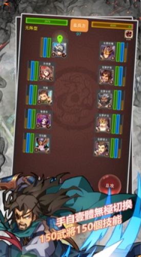 1、众多三国角色,每个角色都有独特的技能和特点,玩家可以根据自己的喜好组建强大的队伍。