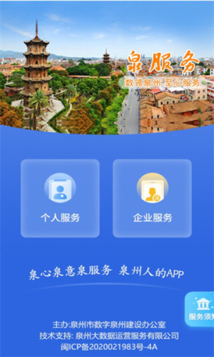 泉服务APP是由泉州市数字泉州办公室主办,泉州大数据运营服务有限公司建设运营,泉州市面向市民与企业统一的掌上政务与便民服务平台。“泉服务”APP整合了全市政务、民生、公共服务资源,打造市级通用服务与区县级特色服务,构建全市统一的一体化政务与便民服务体系,目前已集成政务、民生、医疗、交通、公安、应用、旅游、惠企、信用等十一个主题,开通十三个区县专区,提供政务与便民服务超960项。