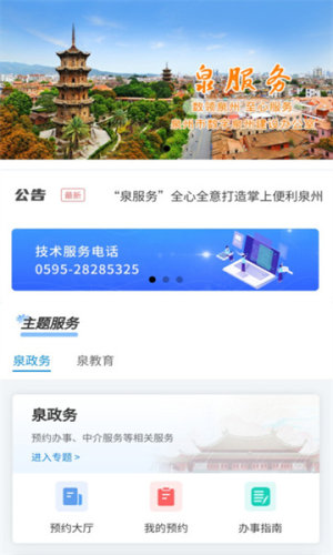 泉服务app,泉州本地掌上服务平台,为泉州本地人带来便捷服务,提供政务办理、教育服务、个人办事等多种功能,随时随地轻松办事,享受舒适本地生活。