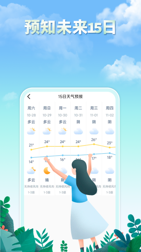 能了解到最新的天预警、生活指数、穿衣指数,以及温度、湿度等多种数据的呈现。随时可以查询本地区域的天气情况,精确到几点几分,不会有太大的误差。