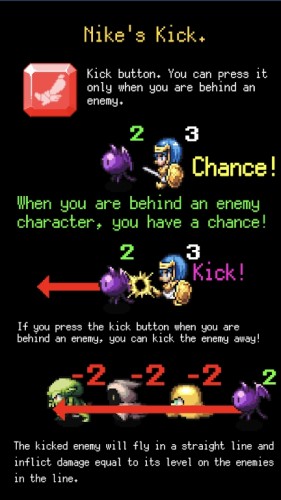 如果耐克与等级比自己高的敌人战斗,她会受到伤害,但如果她在她身后,她可以踢任何等级的敌人。