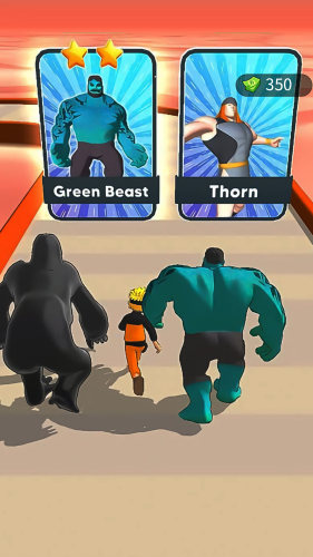 奔跑吧大英雄,跑酷卡牌战斗游戏,操控你的角色不断前进跑酷,超越对手,选择你的卡牌合成升级,强化战力,对决对手,成功通关到底吧。