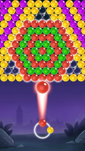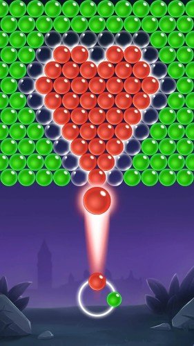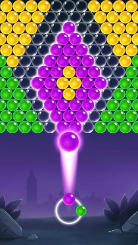 1、滑动手指发射泡泡,让相同颜色的泡泡爆破。
