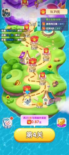 凡是一个新人,只需要依照提示,简单的画线一下,保护好狗头,完成第一个关卡,那么自然会有0.3元