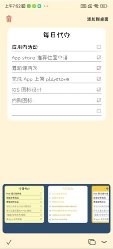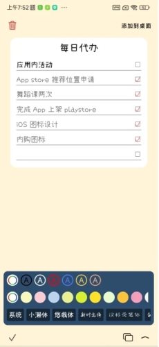 把重要的 TODO,待办事项等放在桌面,随时提醒,完成后打勾\划线记录状态,可以在桌面直接打勾完成