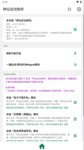 一个实用的救砖模块,有效防止你在使用过程中手机变砖,无法开机。会在出现问题的情况下,停用所有模块,从而保证手机开机。开机后自行卸载问题模块即可,特别方便!