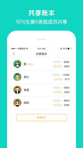 【共享账本】一个圈子共享同一个账本,圈子里每个人都可记账可查账,再也不需要麻烦某个小伙伴当大管家了。谁付钱,谁记账,数据存储在云端,安全可靠。