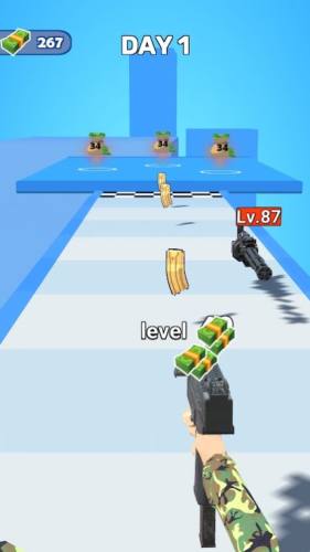 3、收集各种加速道具和金币奖励,解锁更多的机关枪和升级道具。