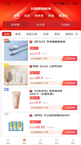 壹久零久是一款给用户提供隐藏优惠券的网购返利软件,随时都可以参与到平台当中进行购买,不管是淘宝、京东、天猫还是拼多多的优惠券,都可以给用户汇聚在平台当中,在购物的时候可以节约更多的成本,每天都会实时的更新优惠券,发送一些商家的大额优惠券,可以随心所欲的领取。