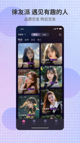 徕友派交友软件是一个专业、便捷靠谱和安全的交友平台,在这里大家可以遇到和自己志同道合的朋友,一起交流,分享彼此的爱好和兴趣,大家可以很放心的在这里展示自己,从而遇到心仪的另一半。