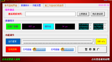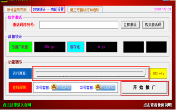 2. 点击数据统计 – 功能设置按钮,调节运行速度,点击开始推广按钮