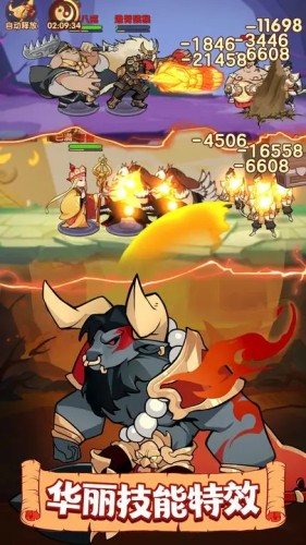 一棒一个小妖怪,一关一个大魔头,击败魔头更有宝箱从天而降。爽快通关,战斗不停,不需要点击开局结束,放置挂机一路前行。游戏退出后台也能继续闯关,宝箱奖励拿到手软!轻松放置,爽快挂机。