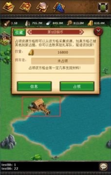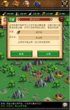 点击占领,我们就可以获取木材这一种资源了。如果发展的这个资源点已经有人在采集了,那么我们也可以点击占领,攻击它。赢了之后我们就能采集这个资源点了。