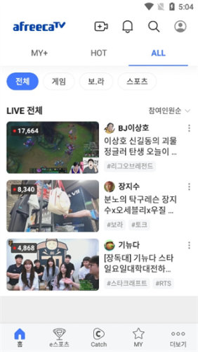 Afreeca电视,体育赛事,游戏节目,谈话节目等具有多种地面和有线广播实时功能