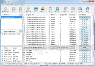在完成搜索处理之后,DupScout将由重复磁盘空间量所有检测到的重复的文件集进行排序。
