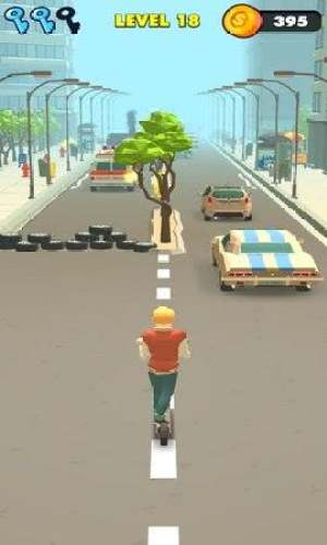 滑板车障碍赛是一款休闲趣味游戏,玩家要驾驶滑板车在车流中穿梭,躲避快速车辆和障碍物,安全将外卖送到顾客手中。游戏操作简单,挑战性高,玩家可更换滑板车和角色皮肤。注意安全过马路,避开封闭道路和违停车辆。