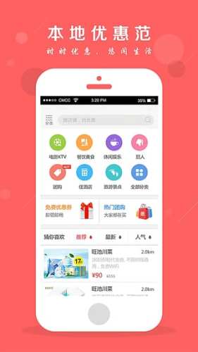 优惠:在这里,即刻免费领取本地商家优惠券,本地生活好帮手。 美好需要分享,有你的生活才够范!