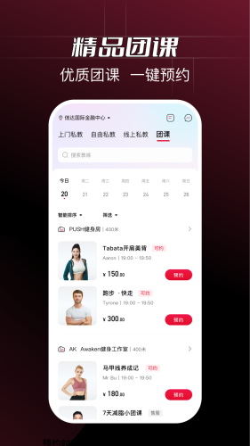 - 自由私教:自由搭配私教和场地,只须支付单次课程费和场地费,让健身时间碎片化,彻底摆脱健身房会员卡束缚。