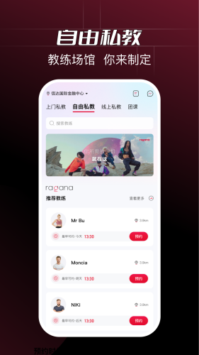 Ragana官方下载,一款强大专业的一站式私教健身服务平台,通过Ragana健身app随时选择心仪私教上门陪练服务,也可以参与精品团练课程,有需要就来下载。