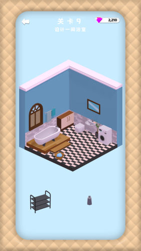在厨房、浴室或房间内完整布置所有的物品后,完成关卡,布置房屋